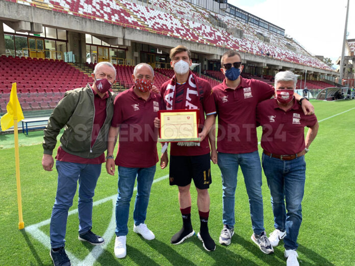 Le norme anti-COVID non hanno permesso la consegna del premio, come fatto negli anni passati, presso la sede del club al quartiere Fratte. Il riconoscimento è stato consegnato dal Club Mai Sola a Di Tacchio in forma privata presso lo stadio “Arechi”, nel pomeriggio di oggi (ore 16, ndr) prima della cerimonia di premiazione della Lega B.