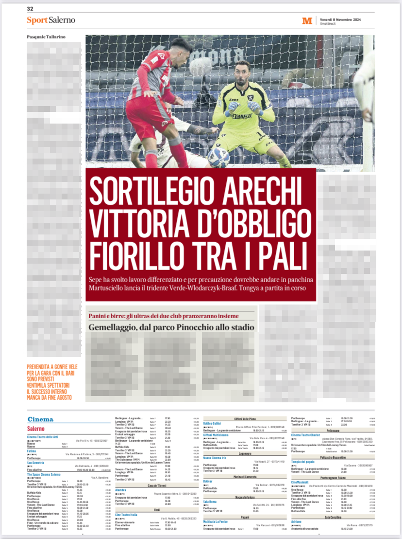 La Rassegna stampa di oggi sullo sport salernitano, 8 novembre 2024
